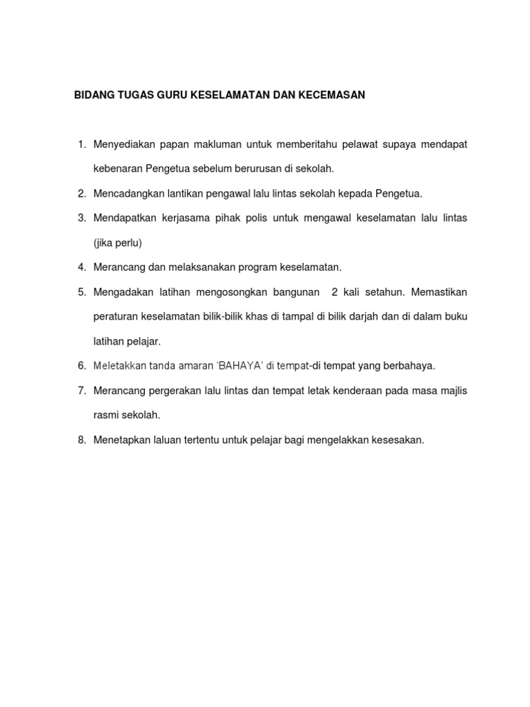 Bidang Tugas Guru Keselamatan Dan Kecemasan Pdf